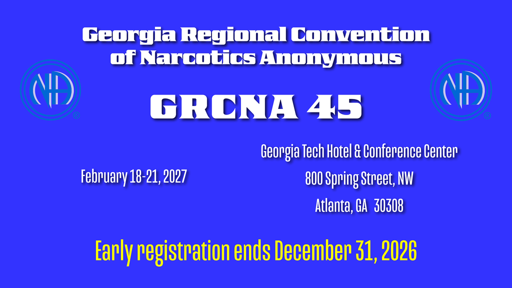 Welcome to the official website for GRCNA 45, taking place February 18–21, 2027, at the Georgia Tech Hotel & Conference Center in Atlanta, Georgia. We are excited to bring our regional fellowship together for a weekend of connection, recovery, and celebration in a comfortable and centrally located venue. Throughout the weekend, attendees can expect inspiring meetings, fellowship opportunities, entertainment, and meaningful shared experiences with members from across the region and beyond. Whether this is your first convention or you attend every year, we look forward to welcoming you to Atlanta for a memorable and uplifting event.